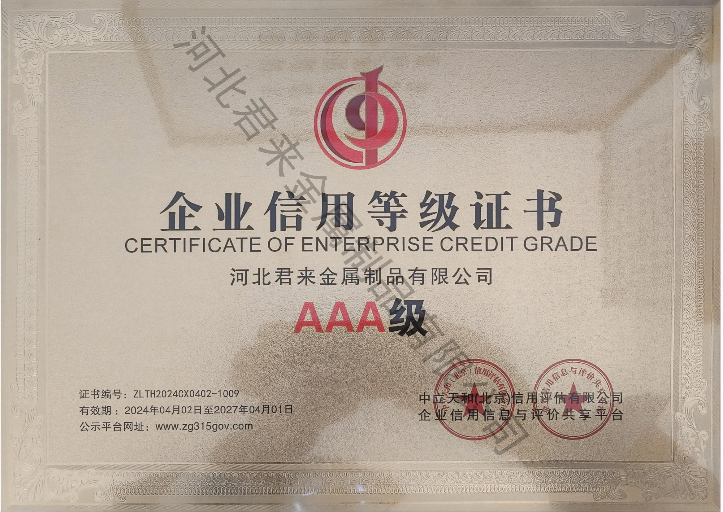 企業(yè)信用等級(jí)證書